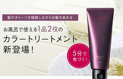 グローイングショットの特徴は女性の様々な髪悩みに対応したヘアケアシリーズ。 ハリ・コシのあるグラマラスな黒髪を目指します。 そしてカラートリートメントの特徴は ヘアカラーとトリートメントの1品2役。お風呂で簡単に使え、1回5分で色づきます。