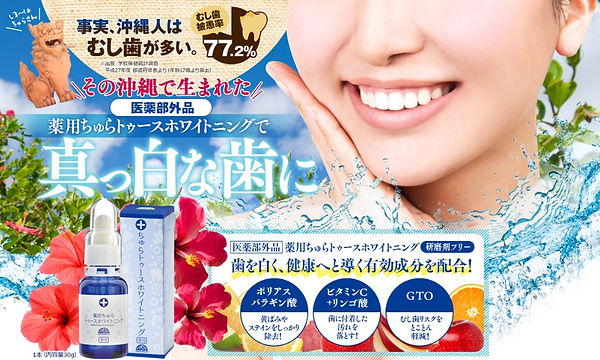 沖縄で生まれた薬用ちゅらトゥースホワイトニングは、歯を白くし口臭、虫歯予防をしてくれる薬用ホワイトニングです。